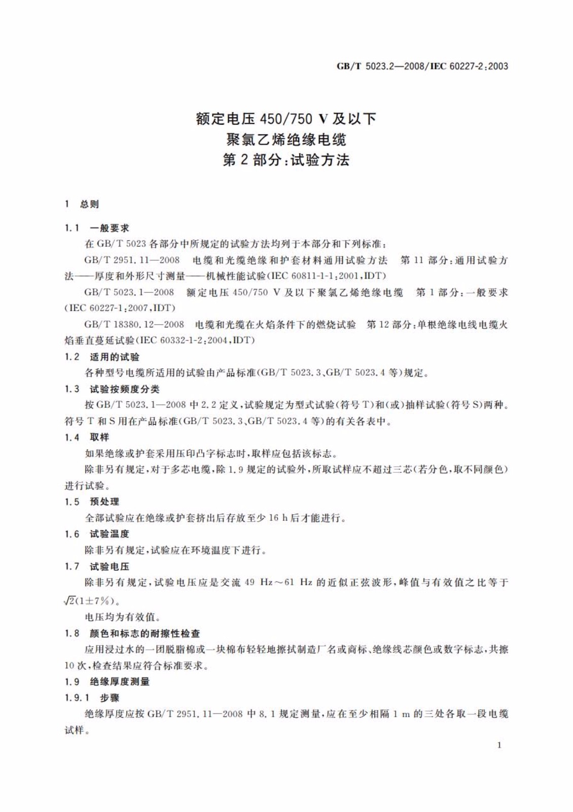 聚氯乙烯絕緣電纜檢驗方法
